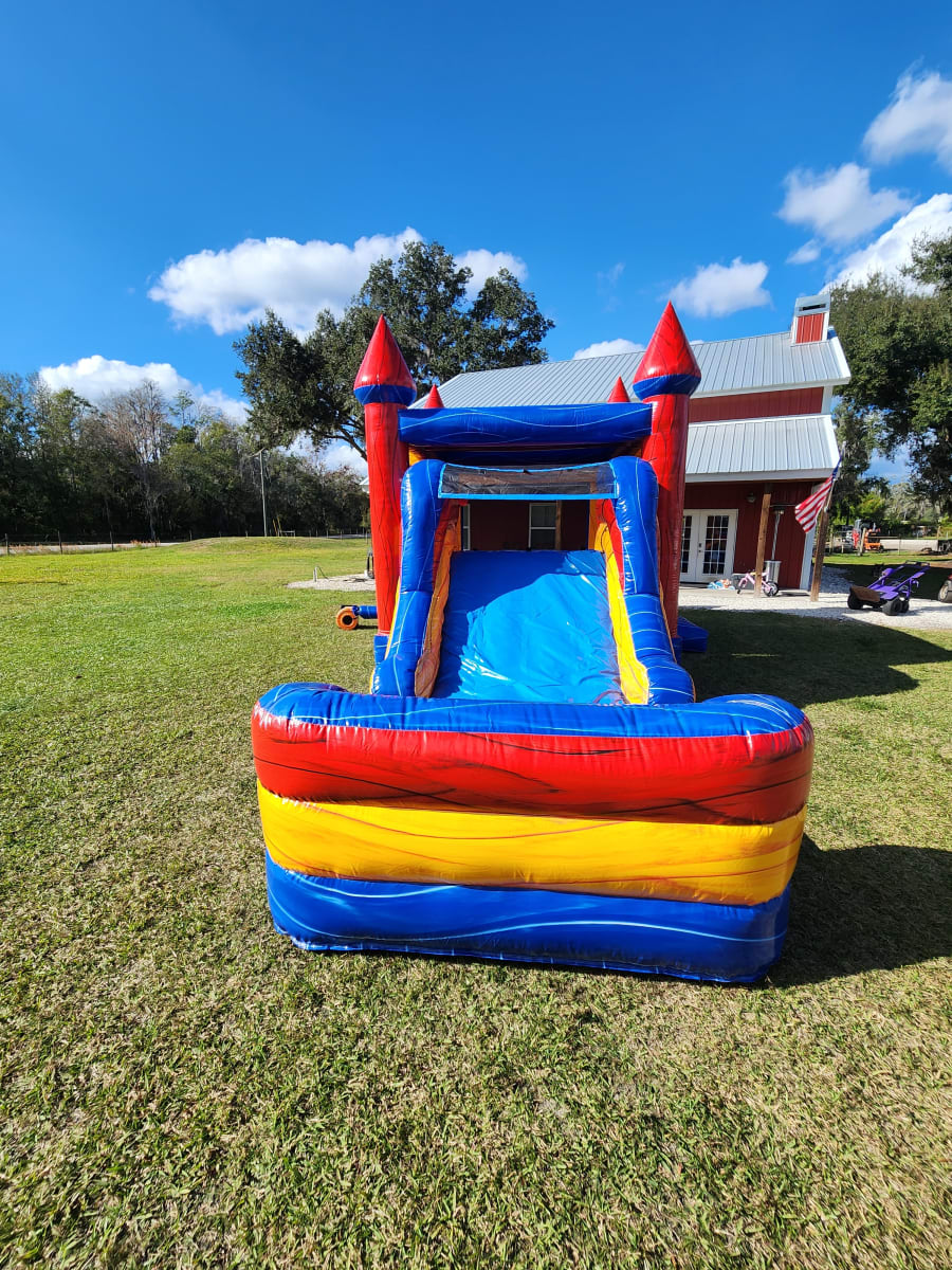 Bring big fun to your next event with the Royal Castle Bounce With Slide. ๐ This inflatable combo is 15 ft wide and 30 ft long. Bright primary colors attract kids. A wide slide and built-in basketball hoop add nonstop action. Perfect for birthday parties, school events, and weekend rentals. ๐