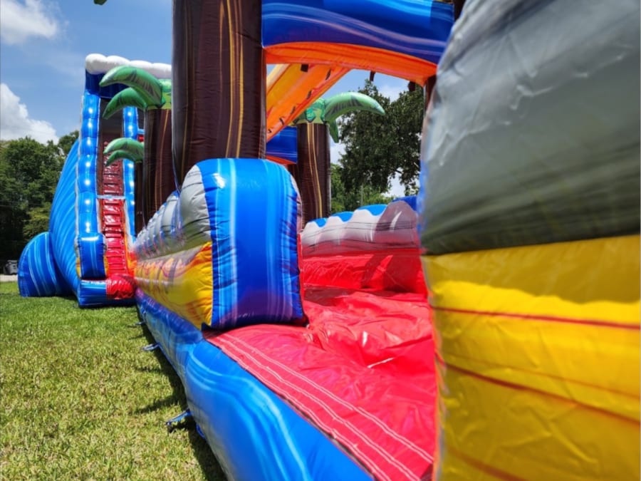 Make a massive splash with one of the biggest slides in Central Florida — the 25 FT RipCurl Water Slide! This towering single-lane beast delivers 70 feet of heart-pounding fun, combining a steep drop, a long slip & slide runway, and a splash pool finish that’s sure to cool you down and keep the party going.