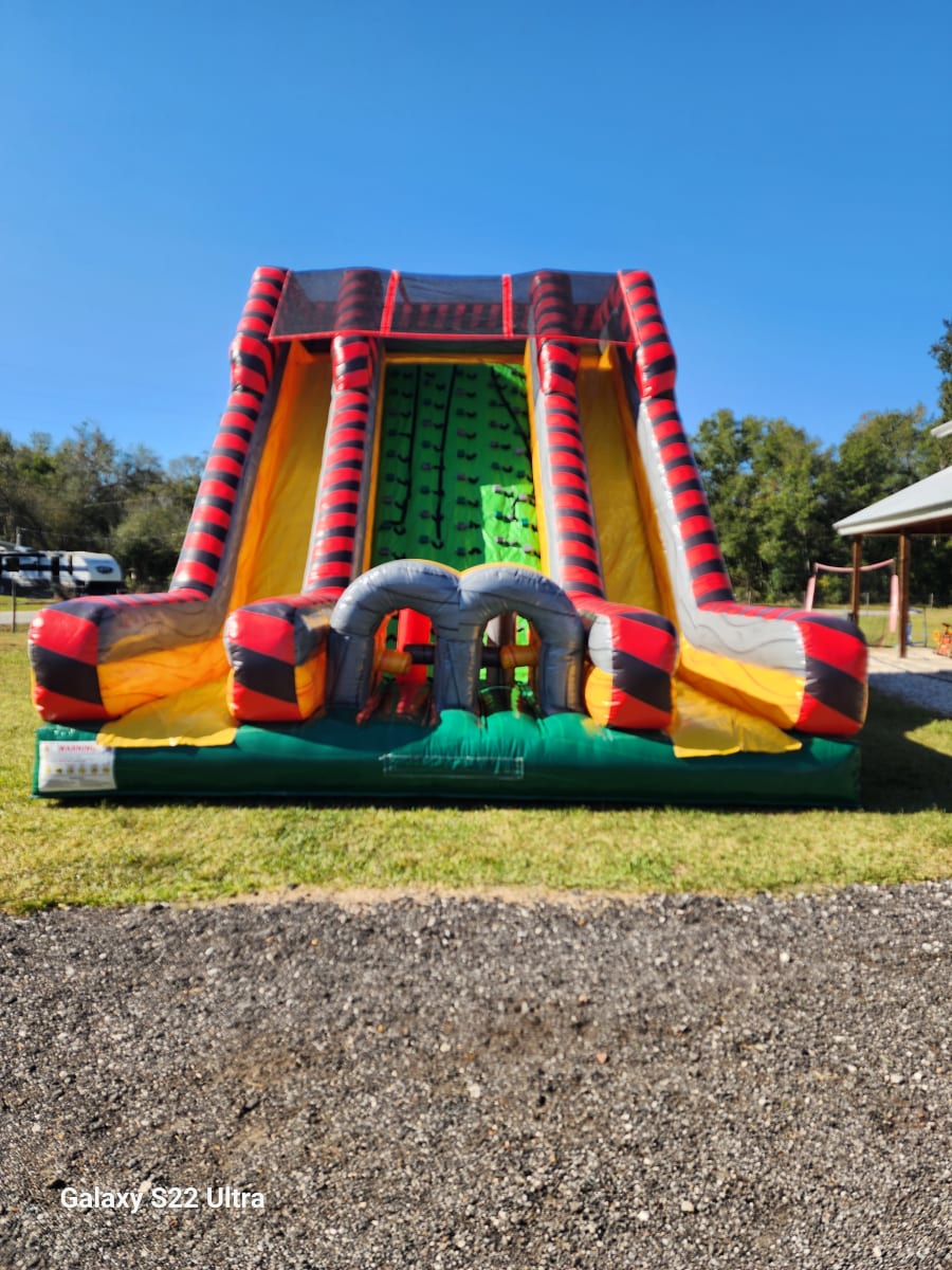 The 22 FT Rock Wall Dry Slide Toxic Rush delivers towering excitement with safe, dry play. This inflatable attraction stands 22 ft tall, spans 20 ft wide, and stretches 30 ft long. It combines a challenging rock-climb wall with a fast, safe dry slide for nonstop action. Perfect for parties, carnivals, school events, and rental fleets. 🎉 SIZE 20 FT W x 22 Ft H x 30 Ft L