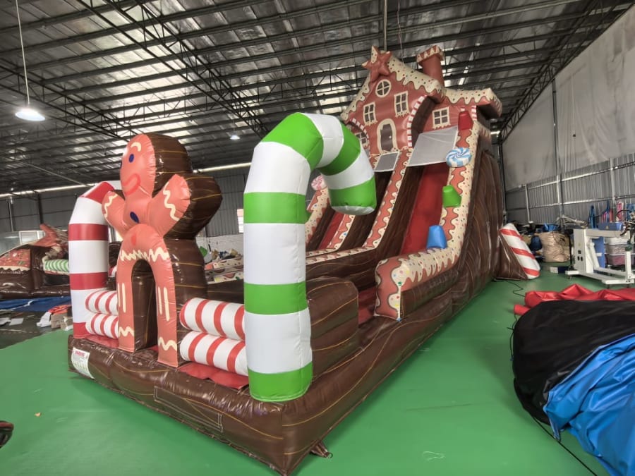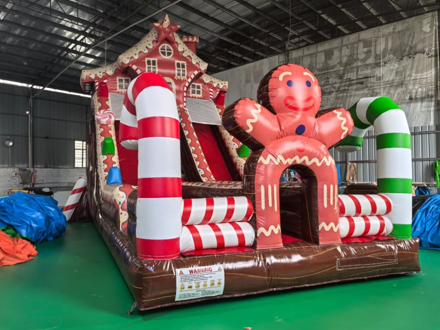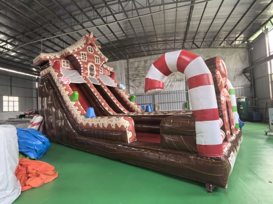The 20 FT Gingerbread Dry Slide is a show-stopping holiday attraction. It stands 20 ft tall, spans 13 ft wide, and stretches 30 ft long. This dual-lane Christmas gingerbread dry slide delivers fast, safe, family-friendly thrills. Perfect for events, malls, and holiday festivals.