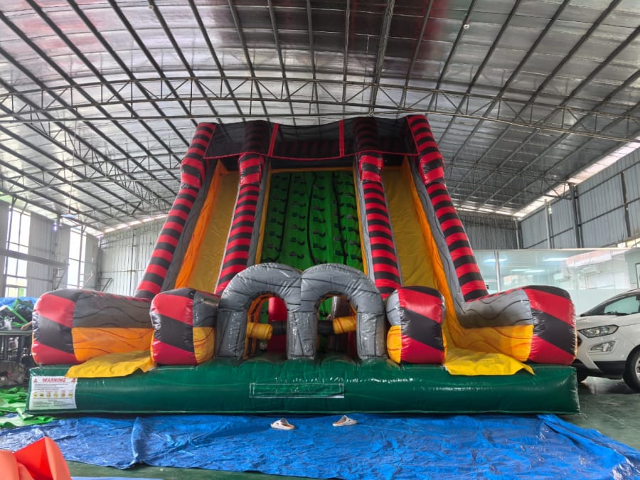The 21 FT Rock Wall Dry Slide Toxic Rush delivers towering excitement with safe, dry play. This inflatable attraction stands 21 ft tall, spans 20 ft wide, and stretches 30 ft long. It combines a challenging rock-climb wall with a fast, safe dry slide for nonstop action. Perfect for parties, carnivals, school events, and rental fleets. 🎉
