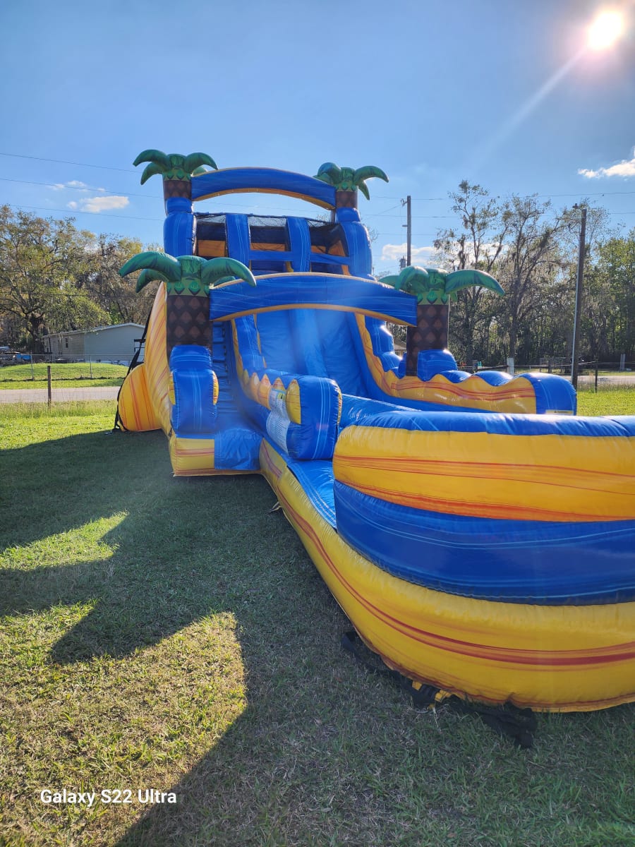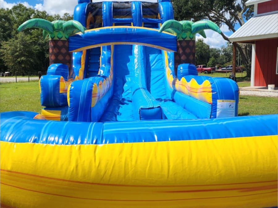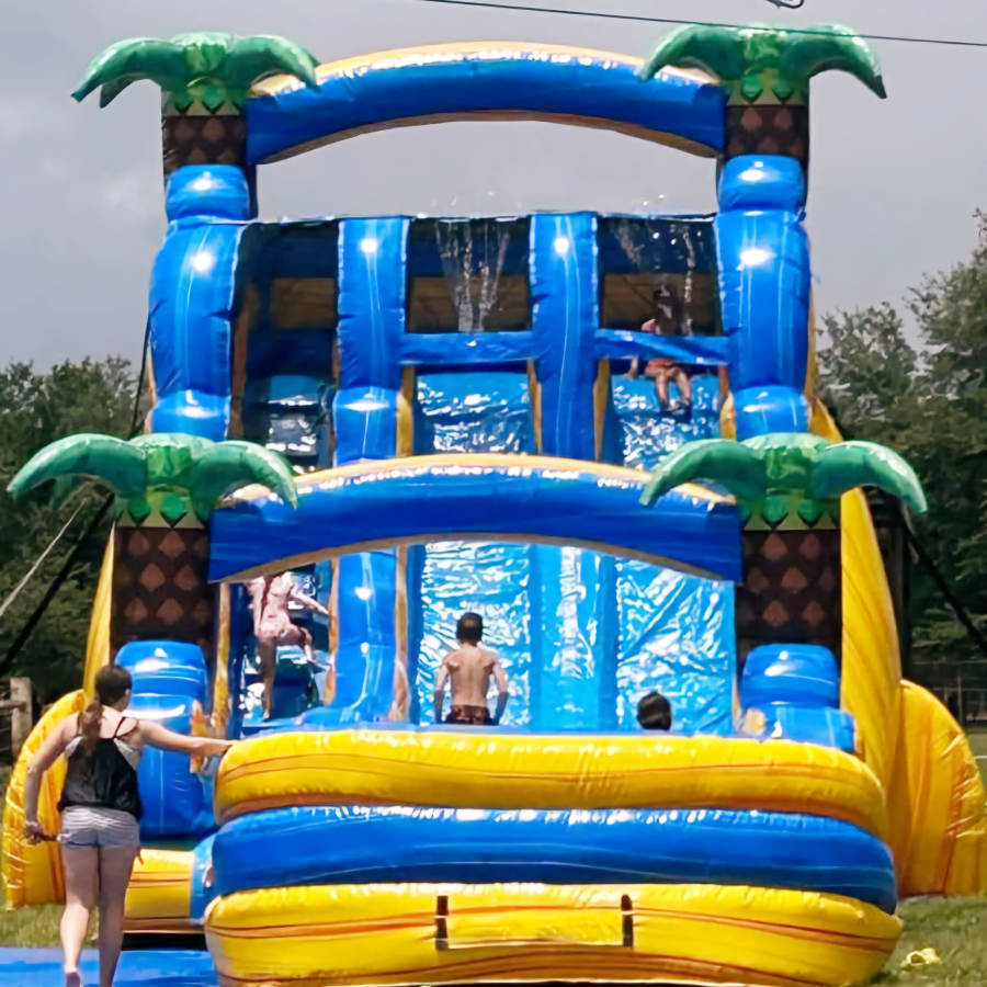 Get ready for double the splash and double the excitement with the Lava Hybrid Dual-Lane Water Slide! This 18-foot-tall inflatable beast features two fast lanes, vibrant tropical colors, and palm trees that make every event feel like a day in paradise.