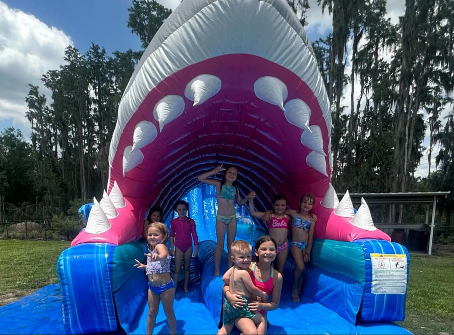 Hosting a party in Central Florida? The Shark Attack is available for delivery across Lakeland, Polk City, Mulberry, Winter Haven, and beyond. Let us bring the water park to your backyard with this one-of-a-kind inflatable.